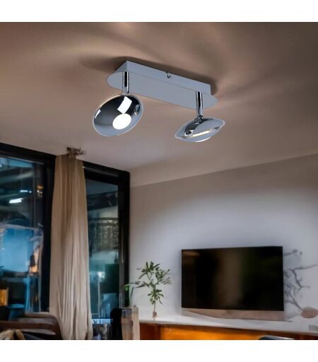 Globo Plafoniera faretto lampada plafoniera luce soggiorno, 2 punti luce mobili, cromo satinato, 2x led 6W 350Lm 3200K, LxPxH 25x11x15cm