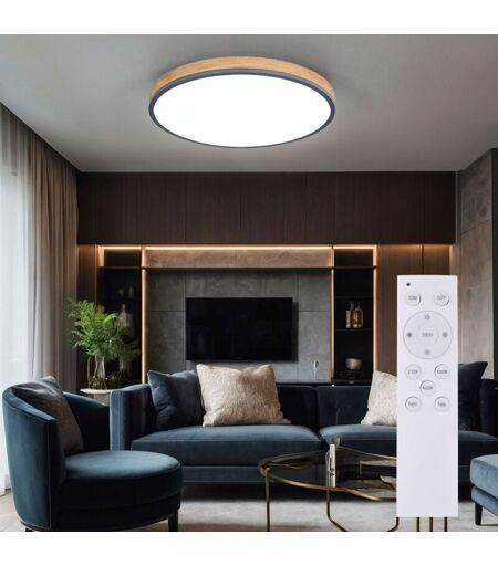 Globo - Lampada da soffitto con telecomando Plafoniera led, dimmerabile, lampada da soggiorno, luce notturna cct, effetto legno alluminio, 1x led 40W