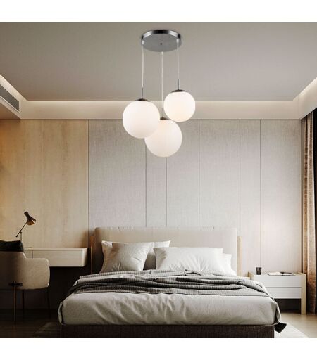 Globo Lampada a sospensione Lampada da soggiorno Lampada a sospensione a sfera in vetro con paralumi di diverse dimensioni, metallo, 3x led 8 w 806lm