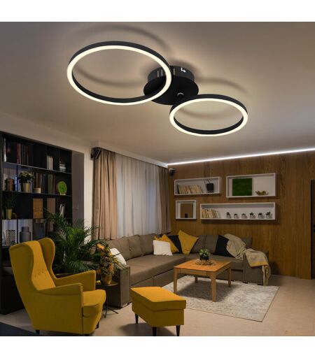 Globo - Plafoniera Ring Design plafoniera nera lampada da soggiorno, realizzata in metallo, 1x led 24W 900Lm bianco caldo, LxPxH 49x25x7,2 cm