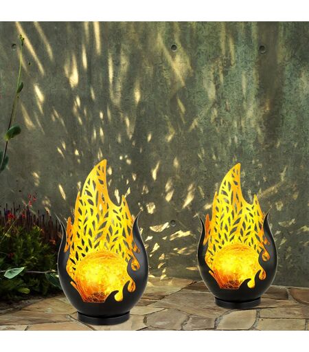 Globo Lampade solari per decorazioni da giardino per esterni, decorazioni per balconi esterni sfera di vetro ottica fiamma oro nero, batteria IP44 metallo,