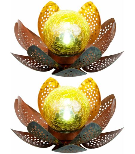 Globo Lampade da esterno da giardino a luce solare decorativa a LED a luce solare con design a fiore di loto, sfera di vetro color oro, LED, 22 cm,