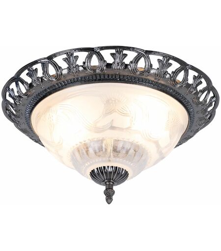 Descrizione Questa plafoniera colpisce per il suo design antico e stravagante! Con le sue decorazioni dettagliate in metallo argentato, la lampada retrò sarà un punto culminante sul vostro soffitto e allo stesso tempo fornirà un'illuminazione perfetta e suggestiva. Il paralume in vetro effetto madreperla è incorniciato dalle volute della cornice. Nella lampada possono essere inserite due lampadine E14, così puoi decidere tu stesso l'intensità della luce e il colore della luce. Le lampadine non sono incluse! Lampada dettagli • Tipo di lampada: lampada da soffitto • Materiale: metallo, vetro • Colore: bianco, argento antico • Design: antico • 2 fiamme • Grado di protezione: IP20 • Diametro x altezza in cm: 33 x 17 • Prese: 2x E14 • Lampadine incluse: no • Potenza lampada: 2x max • Alimentazione: 230V, 50Hz ...