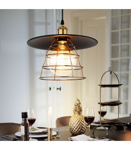 Globo Lampada a sospensione lampada da tavolo da cucina lampada da tavolo lampada a sospensione lampada da soggiorno vintage, metallo ottone nero, 1
