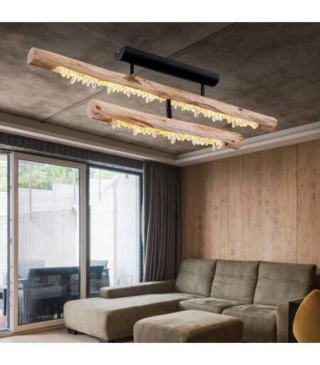 Globo - Plafoniera in legno rustico da soggiorno Lampada da soffitto in legno nero, con decori in cristallo, 1x led 30W 1350Lm bianco caldo, l 100 cm