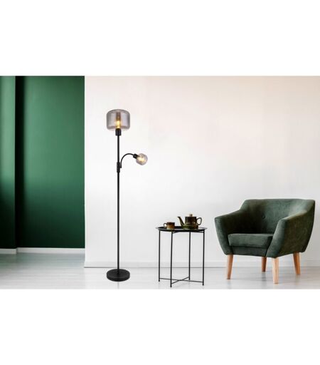 Questa bella lampada da terra ispira con un grande design. Da una base rotonda sporge un'asta di metallo nero opaco lunga 1,6 m su cui si trovano una presa E27 e un braccio flexo con una presa E14. Entrambe le prese includono un paralume in vetro sagomato nei colori fumé e offrono la possibilità di scegliere tra un cavo massimo di 40 watt (E27) e 15 watt (E14), oltre al colore della luce e alla luminosità. Per la longevità e il risparmio energetico, si consigliano le lampadine a LED. ...