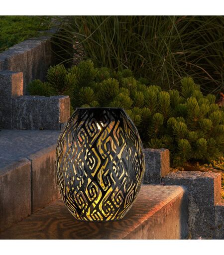 Descrizione Con questa lampada solare darete un tocco molto speciale al vostro giardino. Il paralume in metallo modellato con la sorgente luminosa a LED integrata crea bellissimi accenti luminosi. Grazie alle celle solari integrate, che caricano una batteria integrata, questa lampada può essere posizionata completamente senza collegamento alla corrente. Questa lampada solare si carica durante il giorno ed emette la luce immagazzinata fino a 8 ore al buio. Grazie alla classe di protezione IP44 la lampada è protetta dagli spruzzi d'acqua ed è quindi ideale per l'uso esterno. La sorgente luminosa è installata in modo permanente nella lampada. Lampada dettagli • Tipo di lampada: luce solare• Materiale: metallo• Colore: oro, nero • Maniglia per appendere• Picchetto • Batteria inclusa: 1xAAA• Tempo di illuminazione: 6-8 ore• Grado di protezione: IP44 • Diametro x altezza in cm: 12,5 x 90 • Sorgente luminosa: 1x LED • Lampadine incluse: sì • Potenza lampada: 1x 0,06 watt • Temperatura ...