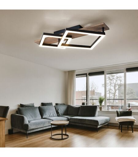 Globo Plafoniera led design lampada da soggiorno lampada da sala da pranzo, metallo nero effetto legno plastica, 18W 1050lm 3000K bianco caldo, l 47,5 cm
