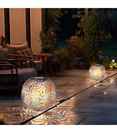 Globo 2x led solari esterni plug-in luci giardino percorso decorazione terrazza treccia palle terra picchetto lampade argento