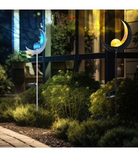 Globo Decorazione da giardino lampada solare luce esterna Lampada da giardino a led, design a luna con picco di terra, argento-blu-bronzo-giallo, h 90 cm,