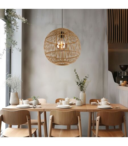 Globo Lampada a sospensione per tavolo da pranzo Lampada da soggiorno Boho, rete di bambù, 1x E27, DxH 30 x 150 cm