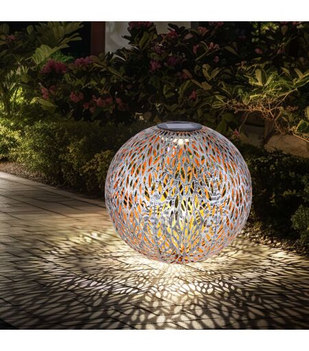 Globo Palla solare luci da esterno lampada solare a sfera da giardino, punzonature decorative, argento antico oro, batteria led, DxH 27 x 38 cm