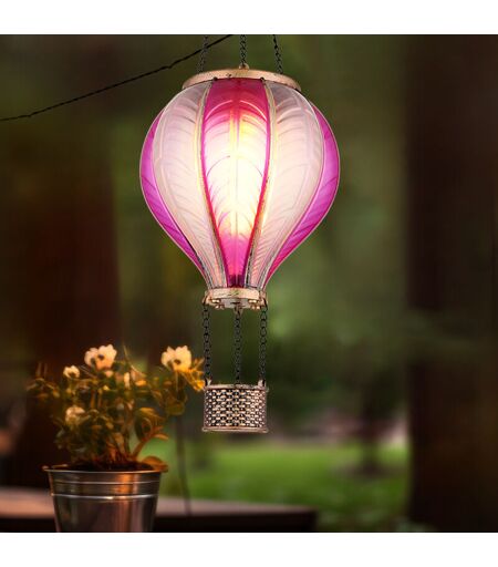 GLOBO LIGHTING Lampada solare a sospensione lampada da esterno mongolfiera rosa effetto fuoco decorazione giardino lampada da balcone, 20x 0,5W 1600K bianco caldo,