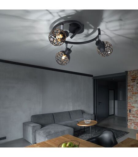 Descrizione Questo bellissimo faretto si distingue per il suo design elegante e la lavorazione di alta qualità. Le trecce sferiche in alluminio, montate su un binario a forma di E e dotate di cristalli acrilici trasparenti, forniscono 1380 lumen di luce con un piacevole colore della luce bianco caldo 2700K. Tre lampadine non sono incluse. Dettagli della lampada • Tipo di lampada: plafoniera • Materiale: alluminio • Colore grigio • Paralume: rete sferica in alluminio, cristallo • punti in movimento • Altezza x diametro in cm: 14x25 • Presa: 3x G9 • Alimentazione: 230V ...