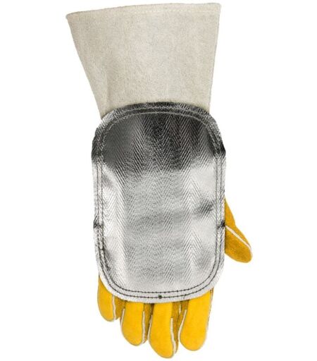 Hitzeabweisendes Handschutzschild WELDAS 44-3008LB (59160) Front aus hitzeabweisendem, aluminisiertem Fiberglas Innenseite aus Spaltleder 3-fach KEVLAR® Garn genäht Breite 15 cm Länge 20 cm ...