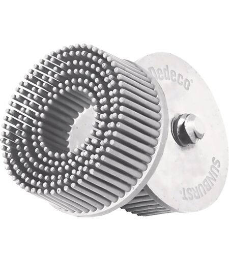 SUNBURST Spazzola rotativa a cambio rapido · adatta per lavorazioni di finitura e lucidatura, nonché per rimuovere vernici, colori e ruggine da una vasta gamma di materiali · le spazzole abrasive rimuovono sottili strati dalla maggior parte delle superfici senza danneggiare lo strato sottostante · durante l'uso, la produzione di calore e polvere è minima · le setole flessibili si adattano perfettamente alla struttura del pezzo, garantendo una finitura di alta qualità ...