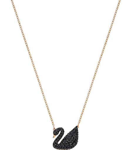 Pendente Da Donna Di Swarovski Della Collezione Iconic Swan. Pendente Con Placcatura Oro Rosa. Gioiello Pendente Placcato Oro Rosa Con Cigno Realizzato Con Pavè Di Cristalli Neri. Lunghezza: 38 Cm, Dimensione Del Pendente: 2x1. 5 Cm. Gioiello Realizzato ...