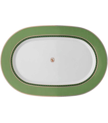 Piatto Ovale 34 Cm Di Swarovski X Rosenthal In Porcellana Di Colore Verde Felce E Con Decoro Swarovski. Piatto Di Forma Ovale Lavabile In Lavastoviglie E Non Adatto Al Microonde. Lunghezza Pari A: 36,2cm, Largehzza Pari A: 24,2cm, Altezza Pari A: 2,5cm. ...
