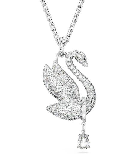 Swarovski Collana Iconic Swan, Cigno, Lunga, Bianca, Placcato rodio OS