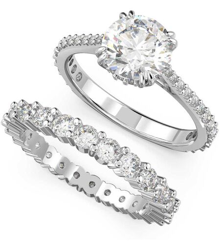 Set Con Due Anelli Da Donna Di Swarovski Della Collezione Constella. Coppia Di Anelli Di Colore Argento Con Cristalli Taglio Princess Di Colore Bianco. Misura: 15. La Referenza È 5647662., Pietra: Acquamarina, Cristalli , Diamante, Diamante Di ...