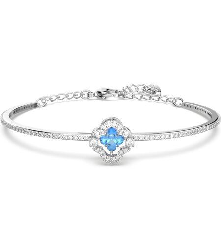 Swarovski Bracciale rigido Una, Quadrifoglio, Blu, Placcato rodio OS