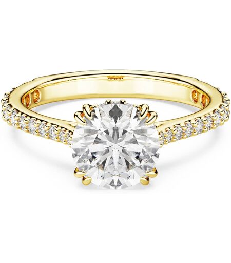 Swarovski Anello cocktail Stilla, Taglio tondo, Pavé, Bianco, Placcato color oro 52