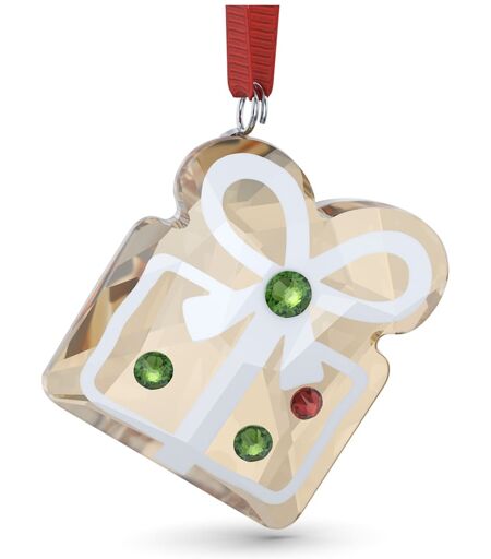 Realizzata in uno stile che ricorda un biscotto, questa incantevole decorazione ispirata al pan di zenzero aggiunge dolcezza e gioia ai tuoi addobbi natalizi. L’allettante design si presenta come una confezione regalo, con cristalli dall’effetto dorato e 112 sfaccettature che catturano la luce. Sospesa ad un nastro in gros-grain rosso, questa allegra decorazione celebra una delle prelibatezze più tradizionali del periodo delle feste. Oggetto decorativo. Non è un giocattolo. Non adatto a minori di età inferiore ai 15 anni. ...