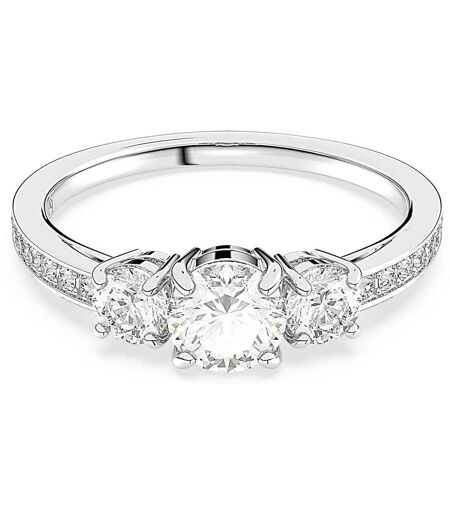 Anello Di Swarovski Attract Trilogy, Taglio Tondo, Bianco, Placcato Rodio. Pensata Per Ogni Occasione, La Famiglia Attract Evoca Un’Eleganza Facile. Questo Anello Classico Irradia Luce Come Non Mai, Con Un Trio Di Cristalli Trasparenti Con Taglio Di ...