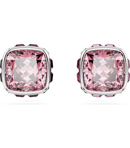 Swarovski Orecchini a lobo Birthstone, Taglio squadrato, Ottobre, Rosa, Placcato rodio OS