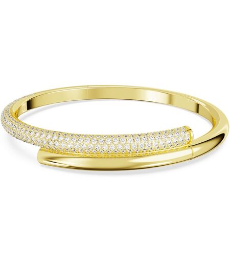 Questo bracciale rigido incrociato, che avvolge il polso in un elegante cerchio, propone uno stile di grande effetto. Il design tubolare crea una splendida armonia tra stile classico e contemporaneo con una fascia placcata color oro impreziosita sulla metà della sua superficie da un pavé di cristalli Cry all-over. Il bracciale è realizzato con una chiusura magnetica invisibile che garantisce una finitura impeccabile. Un lussuoso gioiello che valorizzerà ogni outfit outfit che indosserai. ...