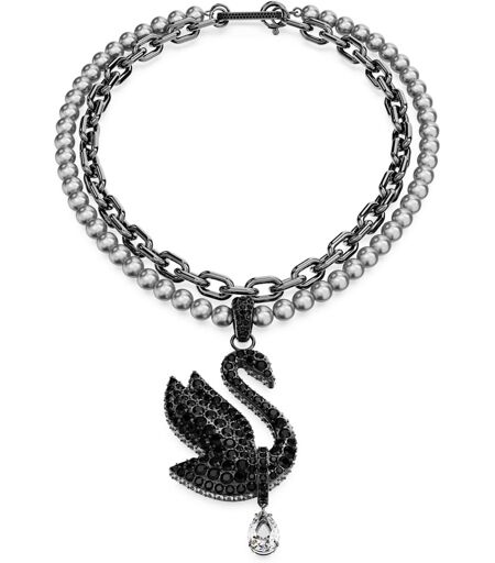 Swarovski Girocollo e spilla Swan, Crystal Pearl, Cigno, Neri, Placcato rutenio OS