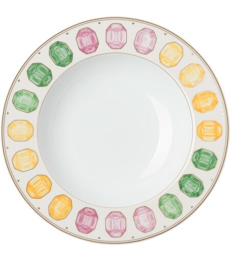 Rendi memorabile la tua prima portata con questa straordinaria scodella Idyllia. Utilizzando una tecnica esclusiva, la porcellana marshmallow presenta un motivo a stampa con gemme che cattura l’essenza e la radiosità dei cristalli. Realizzata in collaborazione con il brand di porcellane Rosenthal, è ulteriormente decorata con sottili linee in tonalità oro, per offrirti un modo vivace per decorare la tua tavola. Questa scodella è lavabile in lavastoviglie, ma non adatta all’uso nel microonde. ...