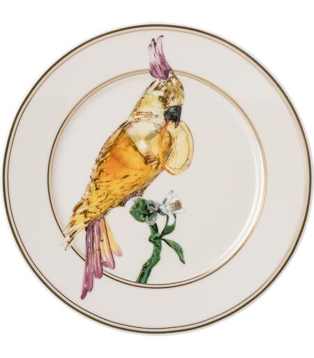 Swarovski Piatto da pane Idyllia, Porcellana, Motivo con stampa in cristallo, cacatua, Multicolore OS
