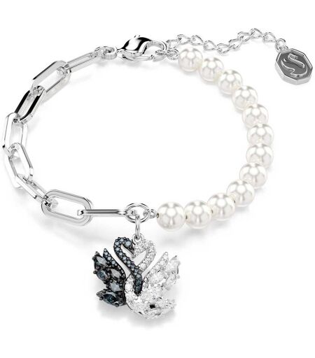 Bracciale Da Donna Di Swarovski Della Collezione Swan. Perfetto Per Esprimere Sé Stessi, Questo Splendido Bracciale È Diviso Tra Una Delicata Catena E Un Filo Di Crystal Pearls Swarovski White, Con Un Elegante Motivo A Cigno Sospeso Al Centro. Questo ...