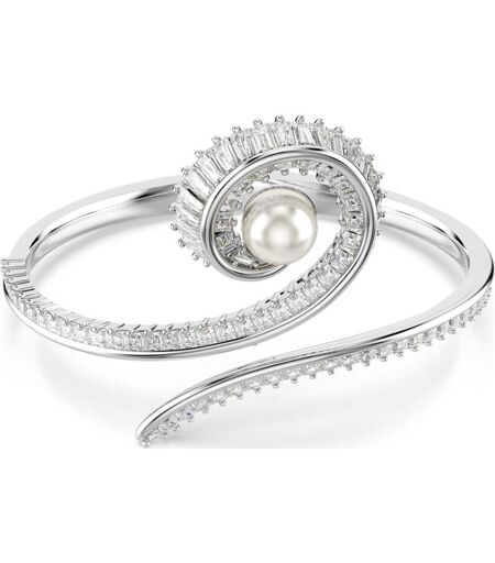 Questo bangle ispirato alla musica combina eleganza e creatività. Ispirato alla forma astratta di una chiave di violino, il design placcato rodio è splendidamente avvolto a spirale e impreziosito da Swarovski Zirconia taglio Baguette. Per un ulteriore tocco di lusso, una singola Crystal Pearl Swarovski è posizionata al centro. Il modo perfetto per donare al tuo stile un’infusione allegra e ritmica. ...