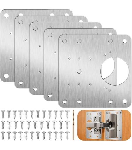 [Kit di riparazione cerniere economico] Questo kit contiene 6 piastre di riparazione cerniere e 36 viti adatte, sufficienti per l'uso quotidiano. Questo pratico kit di riparazione cerniere per porte interne conferisce un tocco decorativo unico ai tuoi mobili. I pannelli delle porte in acciaio inossidabile sono fissati tra loro da cerniere, che trasformano i punti di forza originariamente fissati in superfici di forza, rafforzando così la resistenza del mobile. [Design poroso per la riparazione delle cerniere] La piastra di riparazione delle cerniere per mobili adotta un design poroso, facile da installare e offre maggiori possibilità in base all'anta del mobile, per un migliore serraggio. La sua installazione in pochi minuti è sufficiente per trasformare completamente le condizioni dell'anta. La piastra di riparazione cerniere ha un'elevata capacità di carico. Un'ampia superficie di forza aiuta a bilanciare il peso e a ridurre il rumore, rendendo l'apertura della porta più comoda e ...