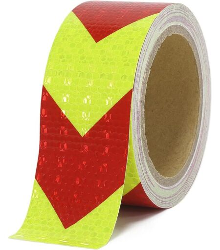 CYSLMUK Pellicola riflettente di sicurezza da 5 cm x 3 m, nastro di sicurezza visibile di notte per auto/moto/bicicletta, sfondo giallo con freccia rossa