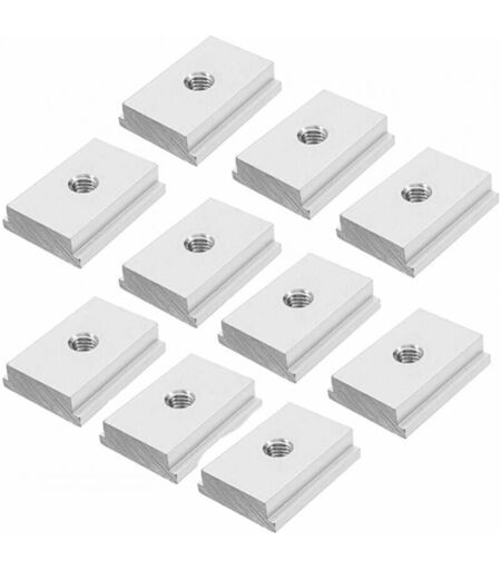 Materiale: alluminio. Filettatura: M8. Quantità: 10 pezzi 10 dadi scorrevoli con scanalatura a T M6 per utensili per lavorazione del legno Sottodimensionati per adattarsi alla scanalatura del tavolo della macchina. Viene utilizzato per estrusioni di alluminio con scanalatura a T per collegare altre parti e collegate tra loro con una vite a T o altro. I dadi con scanalatura a T consentono all'utente di aggiungere morsetti a un dispositivo senza dover rimuovere i morsetti esistenti. ...