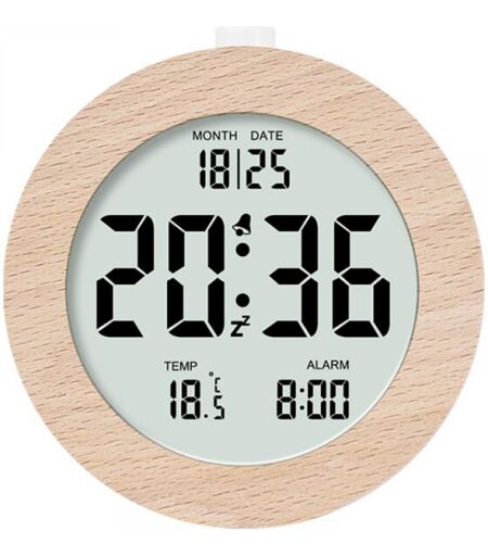 SERBIA Sveglia digitale rotonda in legno, sveglia mattutina, orologio digitale LCD con data, temperatura, snooze, retroilluminazione, orologio digitale