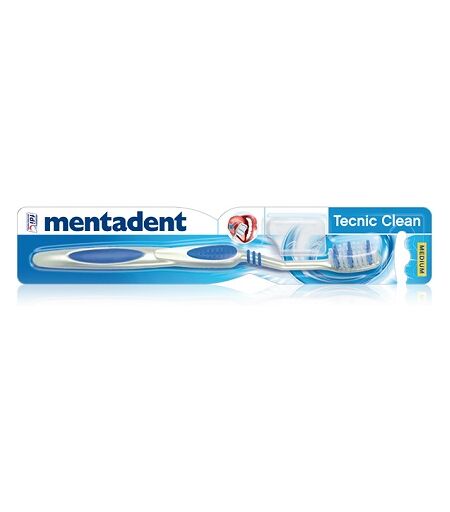 mentadent Tecnic Clean Spazzolino composto da setole a lunghezza differenziata che permettono una migliore azione di spazzolamento tra dente e dente. Il manico a tripla angolazione è stato sviluppato per permettere maggiore precisione nello spazzolamento e facilitare il raggiungimento dei denti posteriori. Formato Confezione singola. Cod.55197 ...