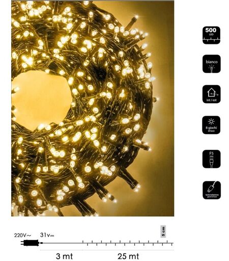 Wisdom Catena di luci Natale 500 led serie luminosa natalizie per esterno interno albero feste cavo verde decorativa Calda