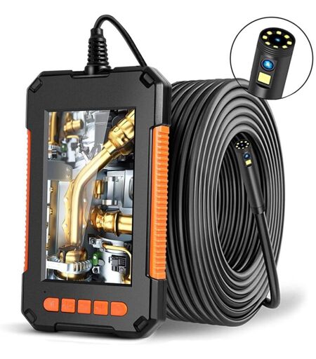 Endoscopio industriale: lo schermo HD a colori da 4,3 pollici e il sensore avanzato forniscono immagini nitide, con risoluzione fino a 1080P, supporta istantanee e registrazione video. Il nostro endoscopio a doppia lente offre 3 modalità di visualizzazione: modalità di visualizzazione della fotocamera frontale, modalità di visualizzazione della fotocamera laterale, modalità di visualizzazione della fotocamera frontale e laterale, fotocamera laterale, consentendo di osservare più facilmente la situazione interna della conduttura. Molto facile da usare: basta accendere l'endoscopio per visualizzare immediatamente il video in tempo reale sullo schermo a colori, senza bisogno di installare alcuna app o di utilizzare lo smartphone per connettersi al Wi-Fi, molto comodo. La migliore lunghezza focale nitida è di circa 4 cm-15 cm, immagini e video possono essere memorizzati nella scheda TF (scheda TF da 32 GB non inclusa). Sonda impermeabile: la testa della telecamera e il cavo sono ...
