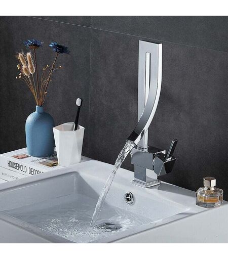SHMSHNG - Rubinetto per lavabo in ottone, stile semplice e alla moda, rubinetto per lavabo, rubinetto per bagno caldo e freddo, rubinetto a cascata
