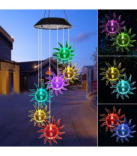LANGRAY Campanelli eolici solari a led, luce solare mobile, lampada solare che cambia colore per giardino, patio, decorazione esterna (sole)-