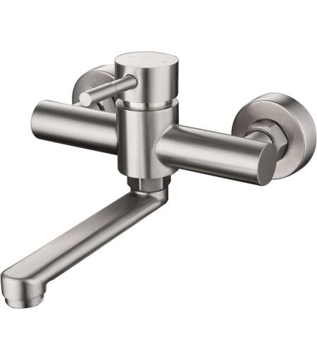 LANGRAY - Rubinetto miscelatore per lavello da cucina a parete in acciaio inossidabile 304, rubinetto da cucina con beccuccio girevole a 360°, corto