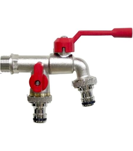 QIYAO 1 robinet extérieur double sortie adapté pour machine à laver, robinet antigel adapté pour balcon de jardin (rouge brossé)