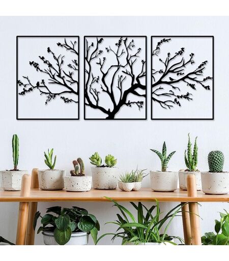 QIYAO Décoration murale en métal 3 pièces, branches d'arbre, idéale pour la décoration murale de la maison (135 x 60 cm)