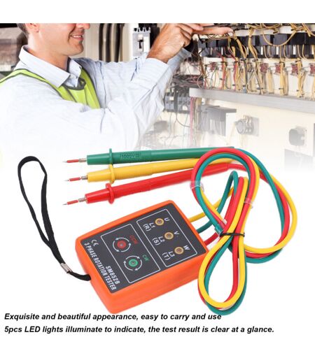 INEASICER Compteur de séquence triphasé 60 V-600 V CA, tester de rotazione de fase, rilevatore con indicatore LED, rilevatore disjoncteur