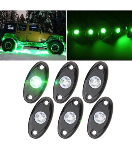 LINGHHANG Kit di luci LED verdi da roccia da 6 pezzi con 6 baccelli per fuoristrada, camion, auto, ATV, SUV, moto, luci sottoscocca, luci da pista, luci