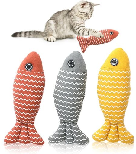 LINGHHANG Confezione da 3 giocattoli con erba gatta: giocattolo per gatti, pesce con erba gatta, resistente ai morsi, giocattolo interattivo per gatti,